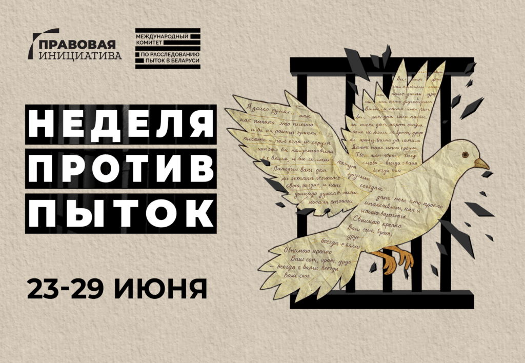 З 23 па 29 чэрвеня адбудзецца «Тыдзень супраць катаванняў», арганізаваны Прававой ініцыятывай і Міжнародным камітэтам па расследаванні катаванняў у Беларусі. Кампанія прымеркавана да Дня ААН у падтрымку ахвяр катаванняў (26 чэрвеня) і накіравана на тое, каб супрацьстаяць сістэмнаму гвалту ў Беларусі, захоўваць памяць пра пацярпелых і дамагацца справядлівасці.