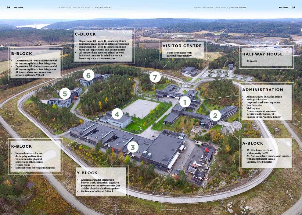Паказчык паўторных правапарушэнняў у Нарвегіі адзін з самых нізкіх у свеце. Турму Халдэн адзначаюць за гуманныя ўмовы ўтрымання, а ў 2010 годзе яна атрымала прэмію Арнштэйна Арнберга за дызайн інтэр’ера.