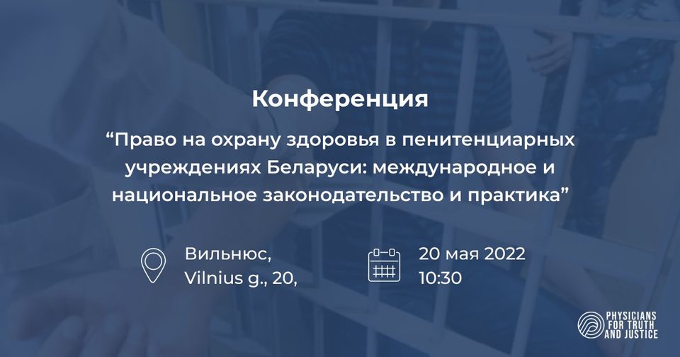 20 мая в Вильнюсе состоялась конференция «Право на охрану здоровья в пенитенциарных учреждениях Беларуси: международное и национальное законодательство и практика», организованная НГО «Врачи за правду и справедливость».