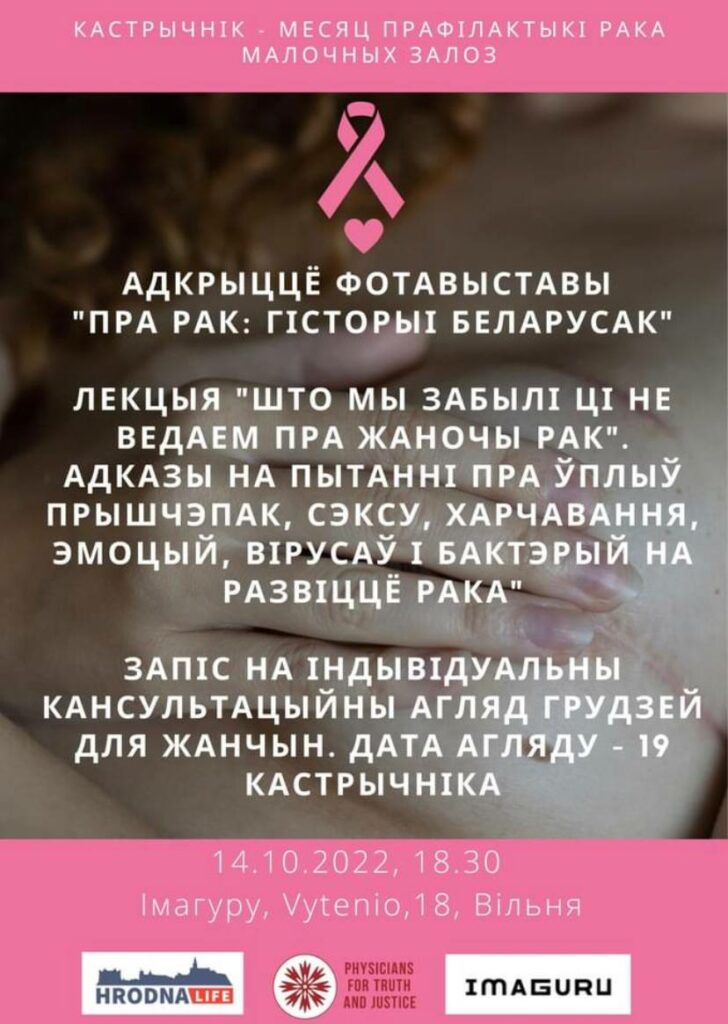 Публичное учреждение «Врачи за правду и справедливость» в партнерстве с медиа «Hrodna.life» и площадкой «Имагуру» в Вильнюсе приглашают на мероприятия программы «Женская онкология».